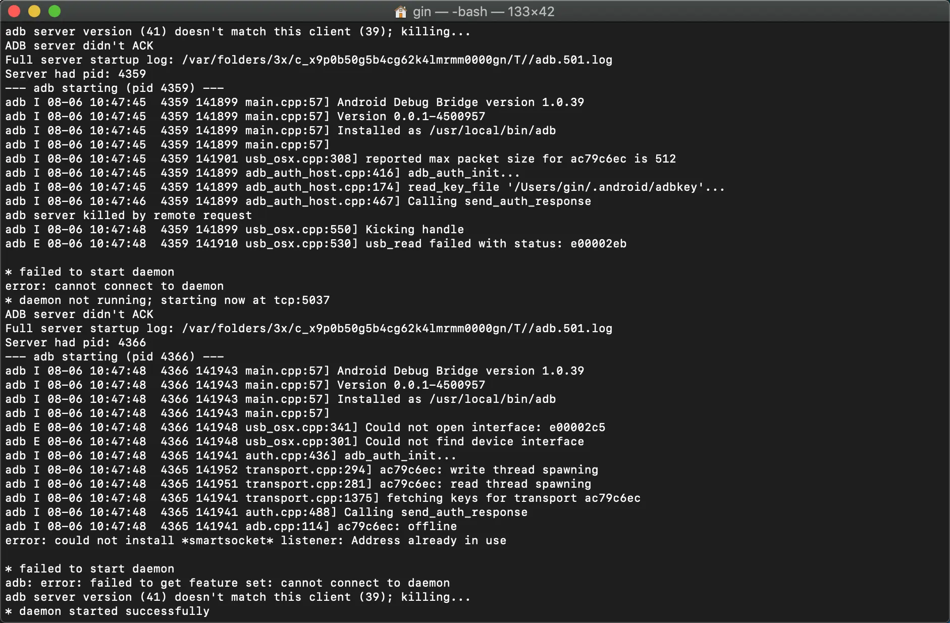 Android studio 打开flutter项目,终端无法使用adb命令? j_gin 2019-08-06 750 阅读1分钟 Android studio 打开有flutter项目,在终端使用adb命令失败,关闭flutter项目可以正常使用adb命令。有哪位大佬知道原因,求告知。终端报错:AS报错: