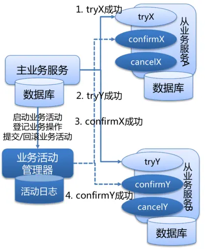 - 失败去反复去重试,直到成功,而不是向强一致性那样,把A回滚的