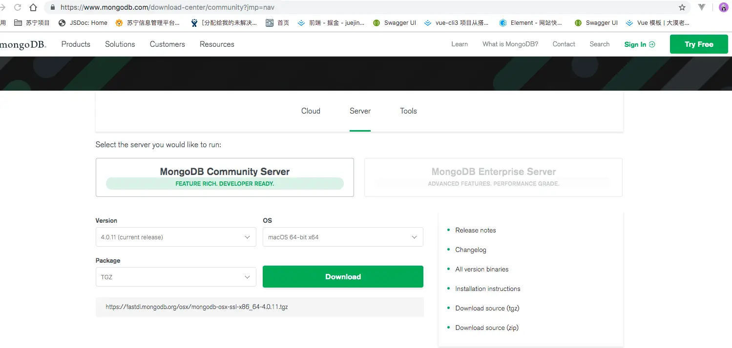官网地址:www.mongodb.com/download-ce… ,可以选择自己想要使用的版本
