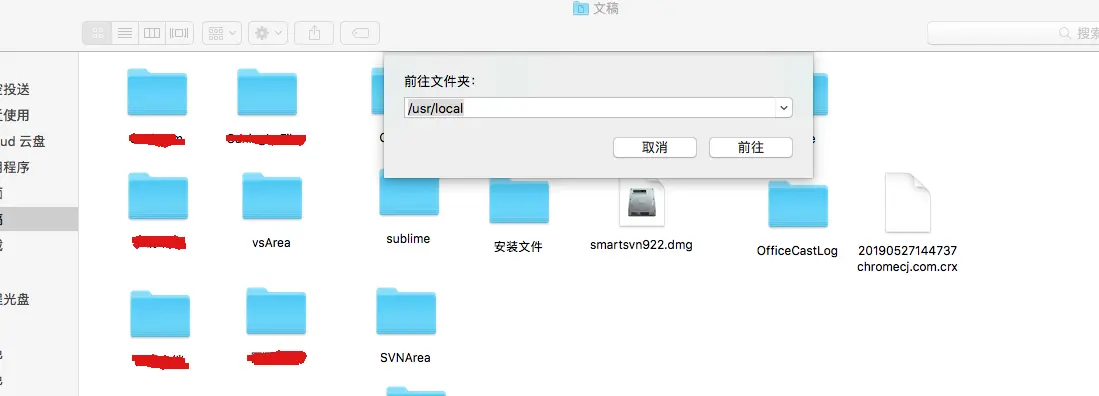 打开Finder(访达)使用快捷键shift + command +G打开快捷快捷目录数据/usr/local回车进入该目录,把mongodb文件复制进来.