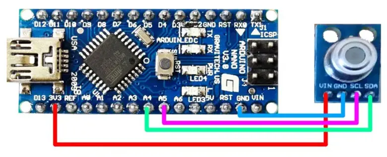 然后我们使用arduino nano来做主控模块,这是连接图: