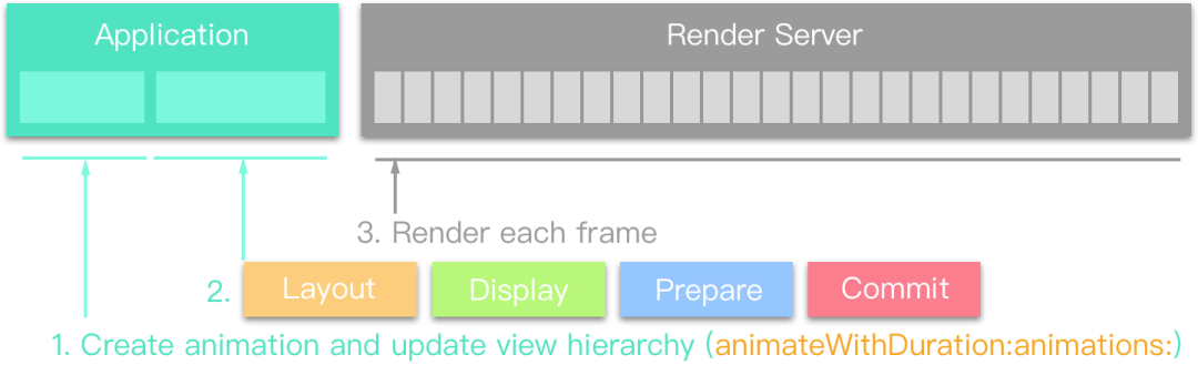 • Core Animation 图层相关的数据提交到 iOS Render Server,即 OpenGL ES & Core Graphics