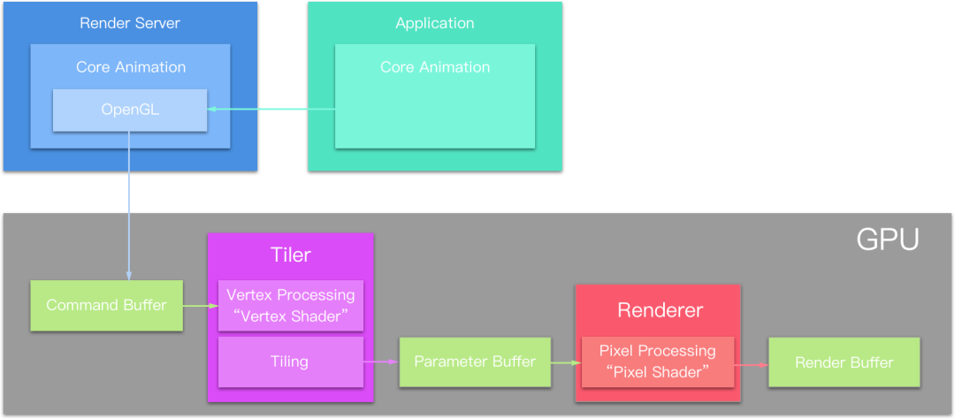 嘛~ 由于 Core Animation Pipeline 中 Render Server 包含 OpenGL ES & Core Graphics,其中 OpenGL ES 的渲染可以参考上文 OpenGL Render Pipeline 理解。