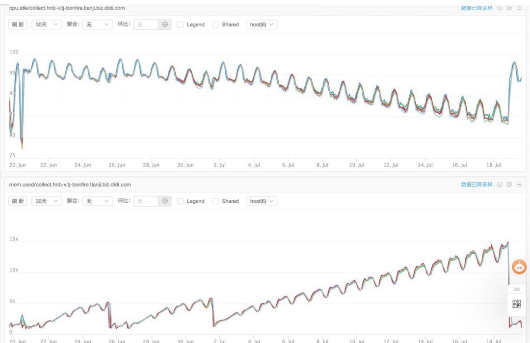 - 内存占用呈锯齿形持续上升,且速度很快,半个月就从2G达到了15G