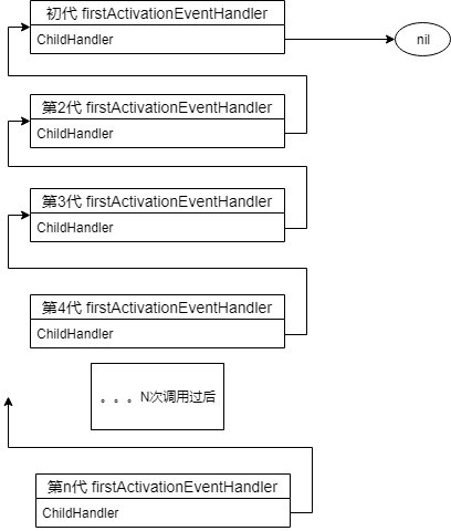 - firstActivationEventHandler.ChildHandler 是一个 interface,在给一个 interface 赋值的时候,如果等号右边是一个 struct,会进行值传递,也就意味着每次赋值都会在堆上复制一个此 struct 的副本。(golang默认都是值传递)