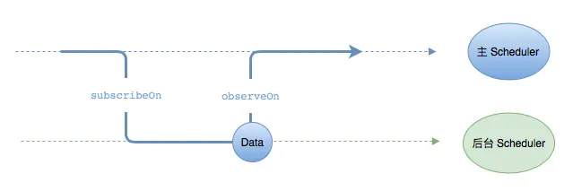 subscribeOn来决定数据序列的构建函数在哪个Scheduler上运行。以上例子中,由于获取 Data 需要花很长的时间,所以用subscribeOn切换到 后台Scheduler来获取 Data。这样可以避免主线程被阻塞。 - 默认情况下,