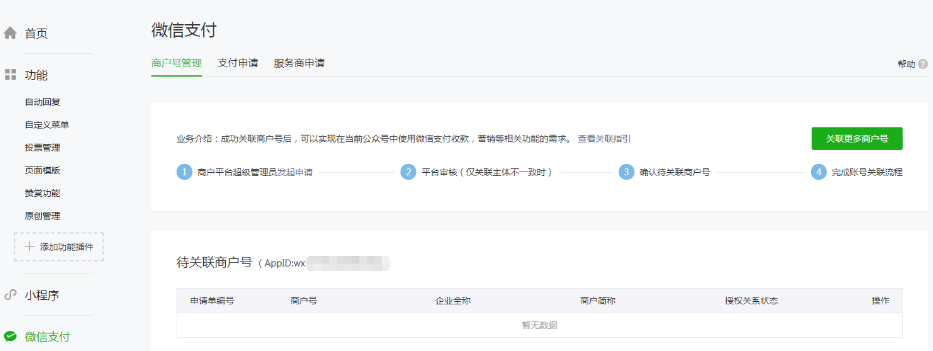 注意:公众号需要关联商户号,否则提示 appid和mch_id不匹配