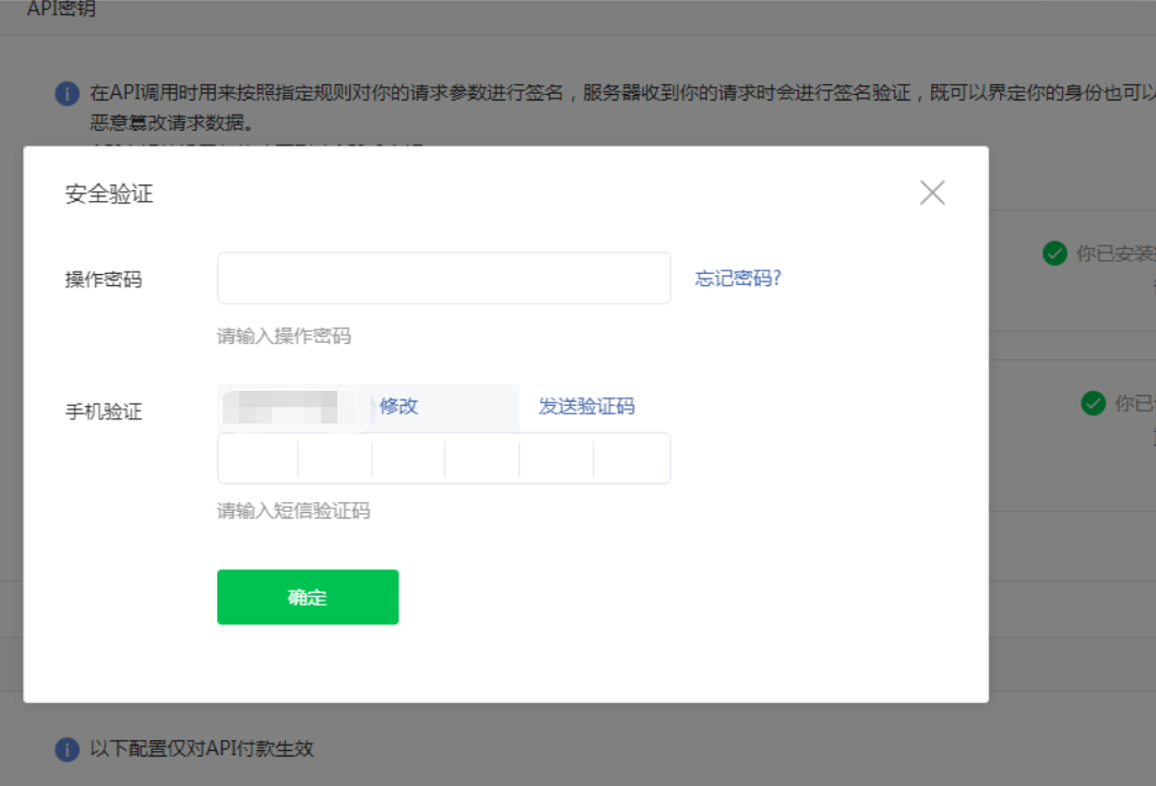 商户秘钥需要动态获取,商户支付密钥自己进行配置32位字母