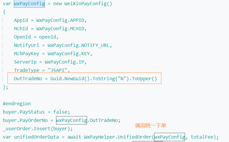 buyer.PayOrderNo = wxPayConfig.OutTradeNo;