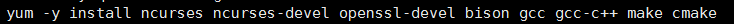 yum -y install ncurses ncurses-devel openssl-devel bison gcc gcc-c++ make cmake