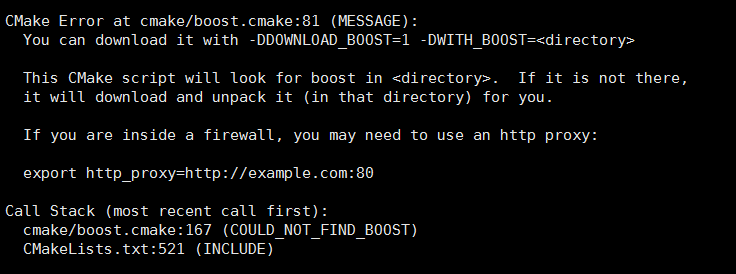 但执行完这个之后会报下面的错,是因为从5.7版本开始就要安装包安装cmake3/usr/local/cmake/bin/cmake . -DWITH_BOOST=/data/mysql/mysql-5.7.17/boost/boost_1_59_0了,yum行不通了