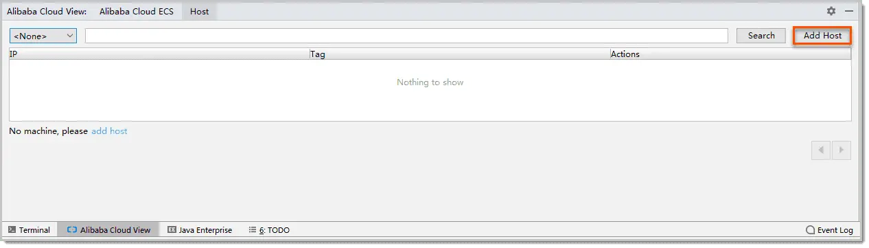 Tools > Alibaba Cloud > Alibaba Cloud View > Host - 在弹出的 Host 页签中单击 Add Host