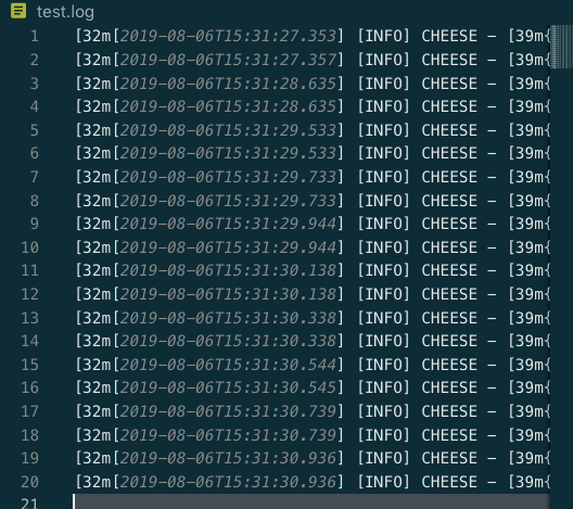 pattern: '{"date":"%d","level":"%p","category":"%c","host":"%h","pid":"%z","data":\'%m\'}'
