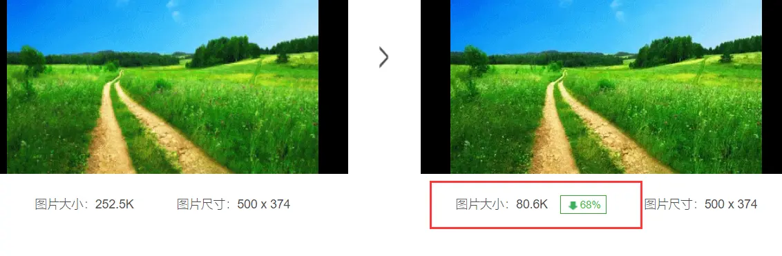 从肉眼上几乎看不出区别,但实际上减少了百分之77的体积!读者可以自己保存图片进行比较。