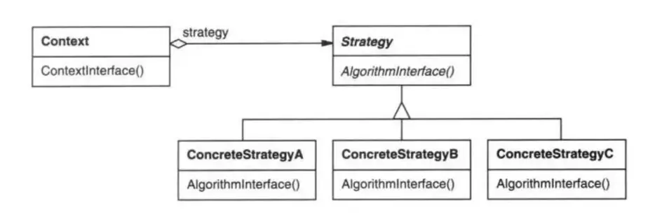 - 抽象策略类(Strategy):通常情况下为一个接口,当各个实现类中存在着重复的逻辑时,则使用抽象类来封装这部分公共的代码,此时,策略模式看上去更像是模版方法模式。