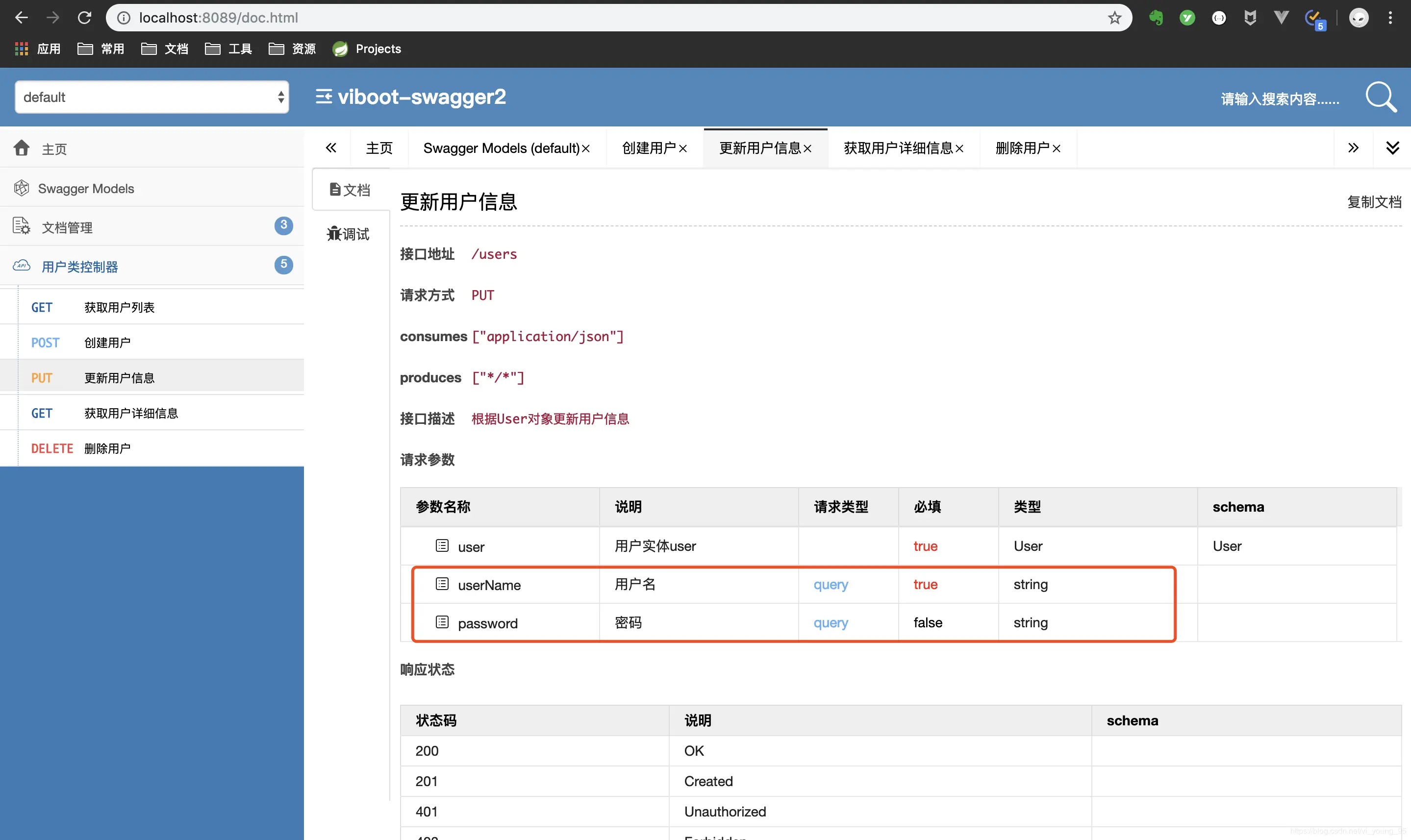 @ApiImplicitParam(name = "user", value = "用户实体user", required = true, dataType = "User")