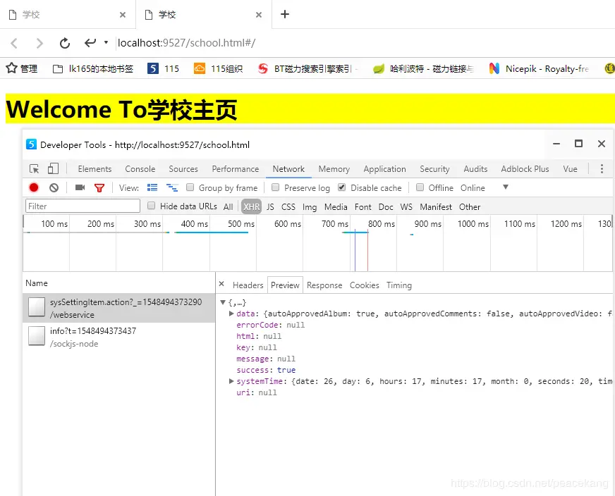 }- 在school/subpage/index.vue中请求接口