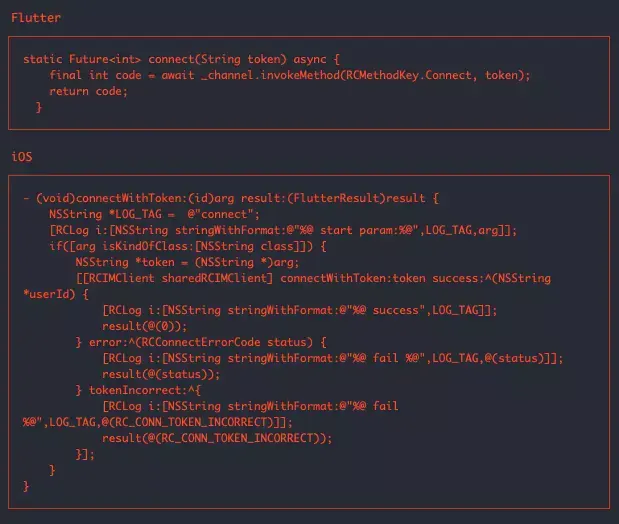 如何确定 Flutter wrapper 调用的是 iOS 的接口还是 Android 的接口?答案是由运行的设备决定,即运行 iOS 设备,Flutter wrapper 自动调用 iOS wrapper 的接口,Android 也是这样。