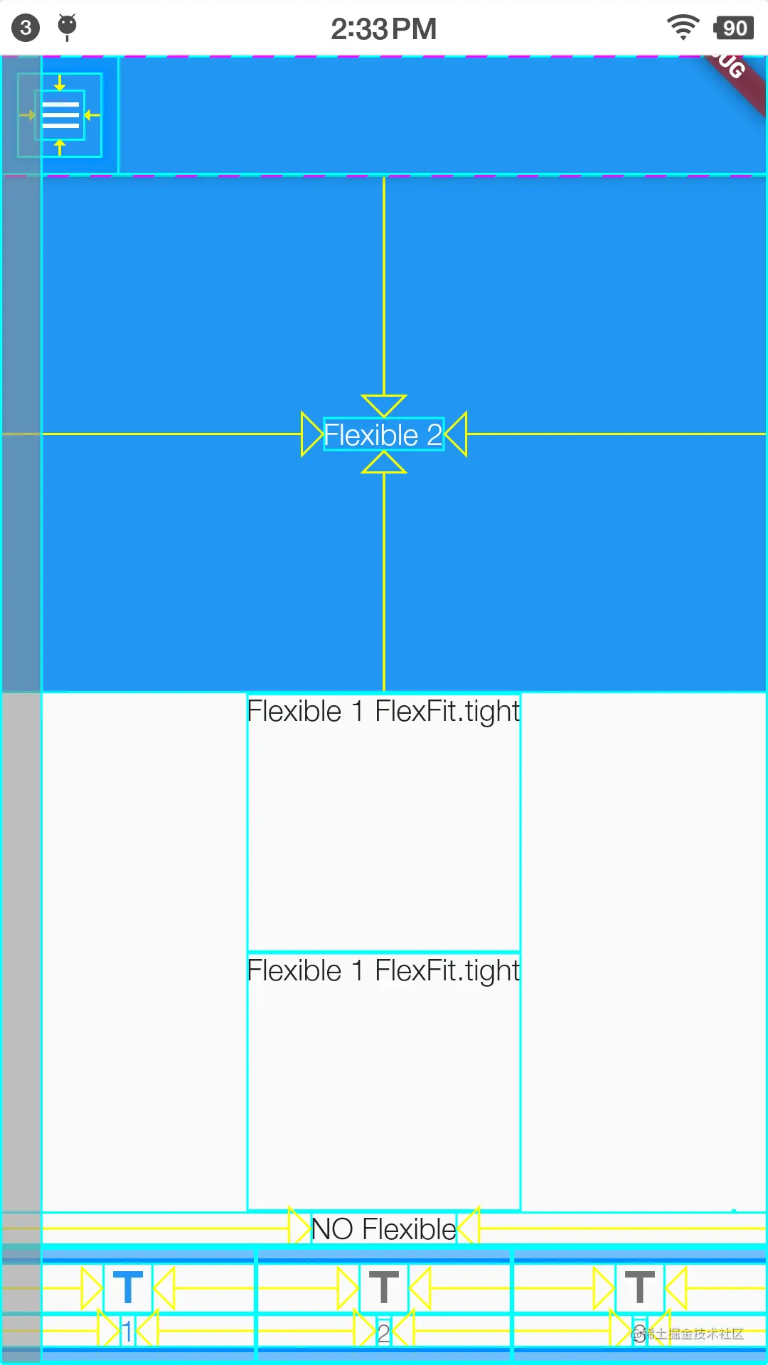 - 例如Flexible内部嵌套了Center组件即便FlexFit是loose组件填充空间还是会按照比重获取对应比例的大小。而没有内部没有嵌套Center组件的Flexible则没有按照比重填充空间而是根据自身组件实际大小填充。详见文档