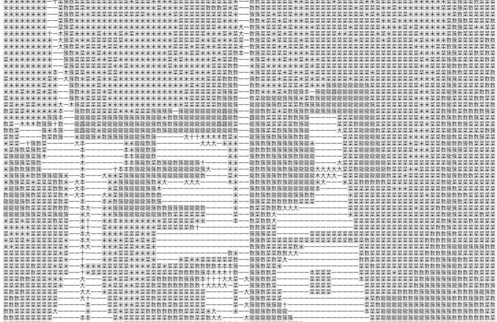 用一个字符数组表示不同的灰度,如ascii字符串" .,:;i1tfLCG08@",越往后表示灰度越高,也就是颜色越深。当然也可以中文" 一十大木本米菜数簇龍龘"。