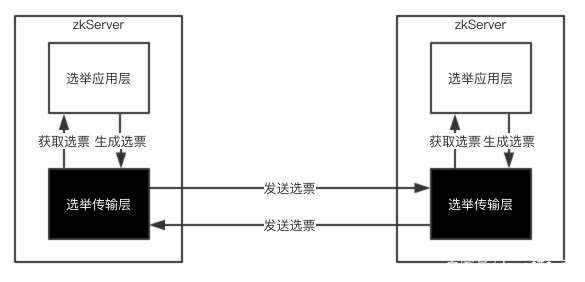 传输层的每个zkServer将接收其他服务器发送的选票信息,这些选票会保存在recvQueue中,以提供给应用层使用。