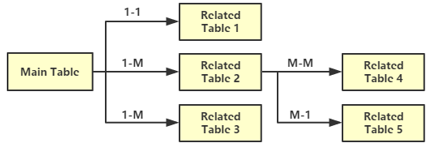 不同表中数据之间的关系用关系图描述。需要注意的是,任何两个表(主表或相关表)都可以有一个关系,任何一对表最多只能有一个关系。主办方保证训练集和测试集的关系图是相同的。