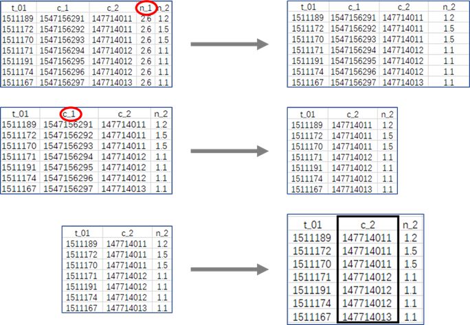 我们通过对表结构及其属性的分析,针对不同类型的数据制定不同的数据预处理方案。首先,在多表间的多个连接 key 中,我们在主表中种类最多的一个 key 识别为 user。基于识别出的 user,可以尝试在主表的 category 中识别出 session。
