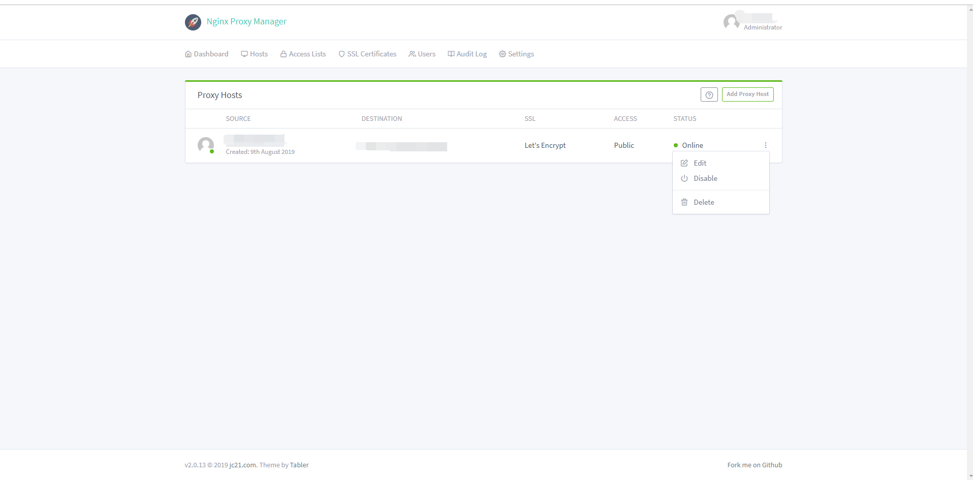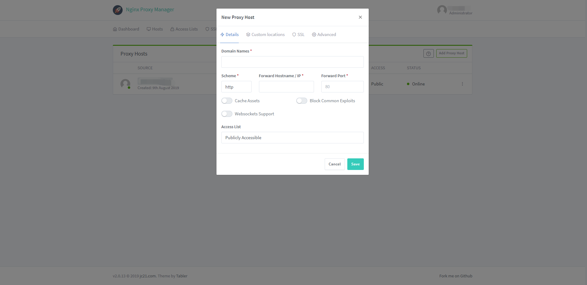 1)点击Add Proxy Host
