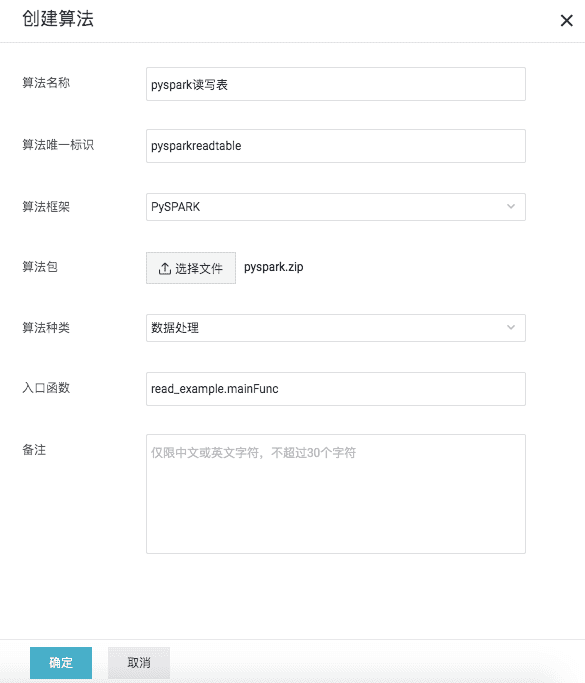本文使用官方提供的pyspark算法包,上传pyspark.zip文件,输入入口文件和入口函数