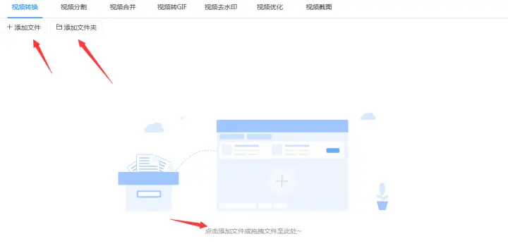 2、确认选择好“视频转换”功能后把在优酷下载的视频或预先准备好的kux格式添加到软件,添加的时候可以点击软件左上角的“添加文件”/“添加文件夹”按钮或者用拖拽的方式把kux格式的视频添加到软件。