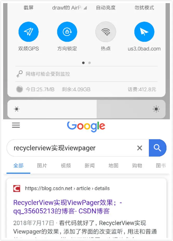 - 于是我打开『小飞机』、打开『Chrome』、输入『RecyclerView实现ViewPager』。