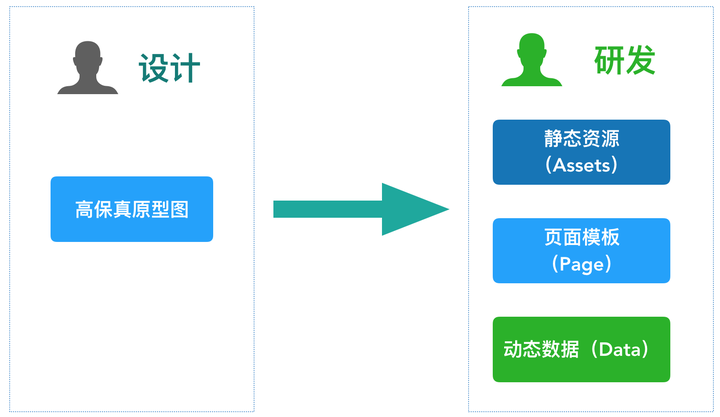 前端研发根据原型图,切图,产出 HTML/CSS/JS ,交付给后端研发。后端研发把 CSS/JS 上传 CDN,然后把 HTML 手动改写为后端模板。- 从数据库查询到一段动态数据。