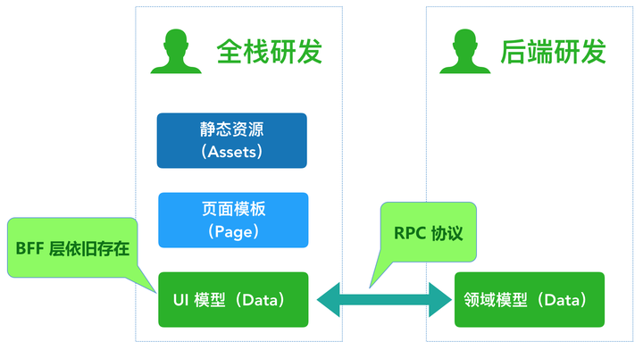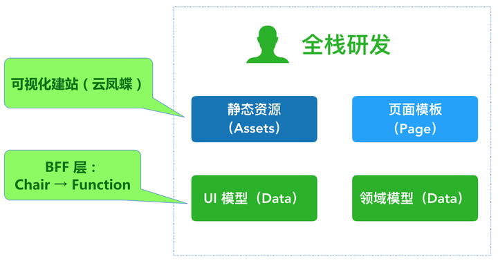 - 全栈研发,专注于处理 Web 层,比模板层更进一步,接管 BFF 层。