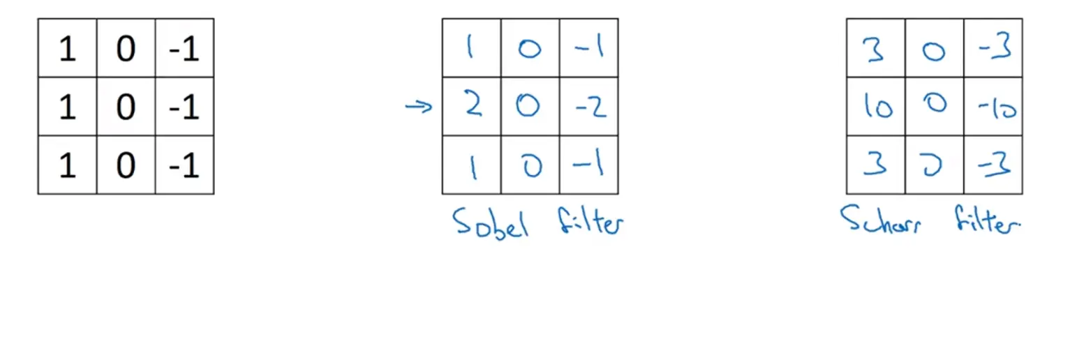 3.垂直过滤器(Vertical)经过顺时针旋转90变水平过滤器(Horizontal)。一般垂直过滤器,左边是正值,中间是0,右边是负值;而同理,旋转后水平过滤器,一般上边是正值,中间是0,下边是负值。常见的过滤器一般是奇数*奇数的。除了1 0 -1的数字组合外还有Sobel filter和Scharr filter。
