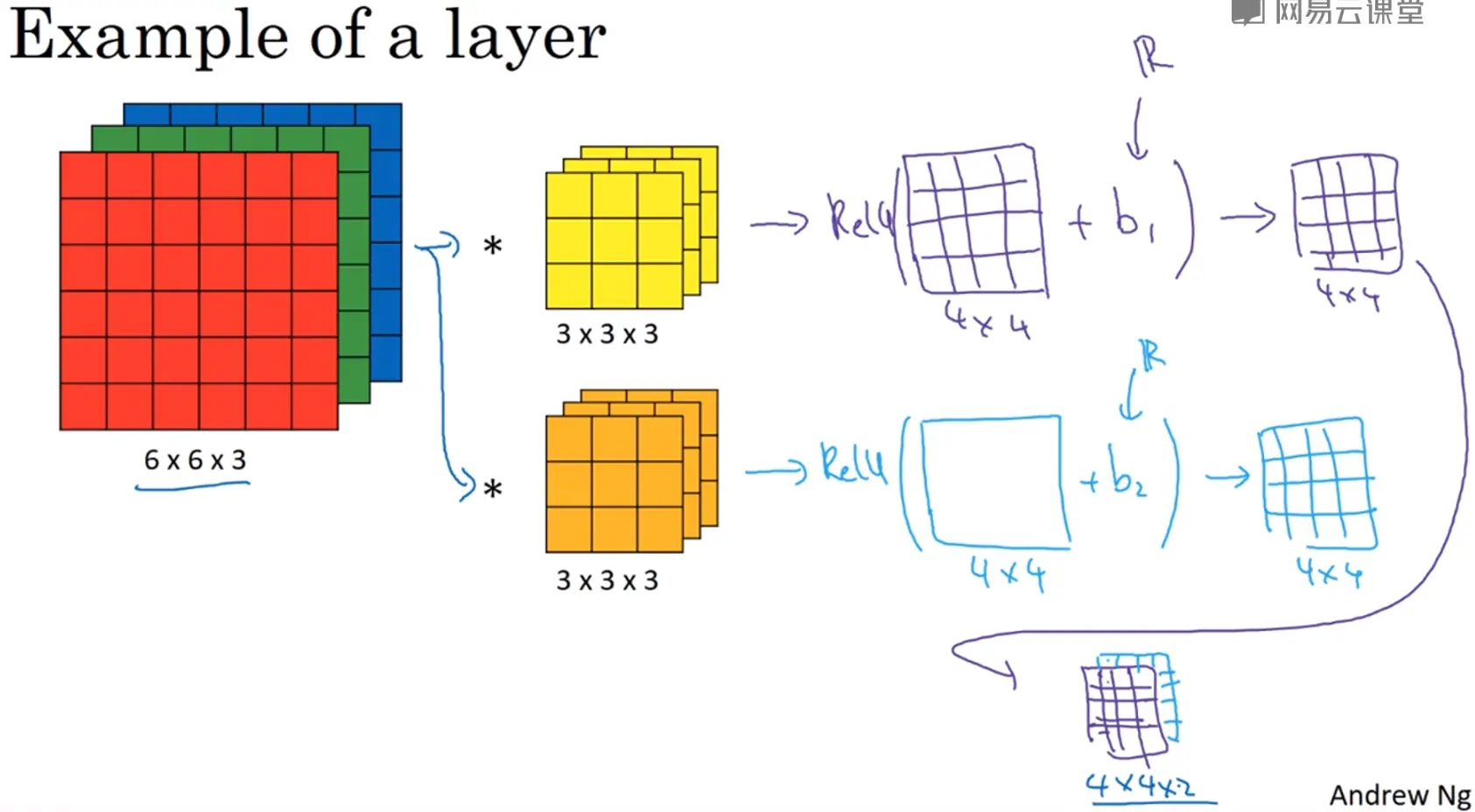2.过滤器。6* 6* 3的图像和3* 3 * 3的15个过滤器(filter)做卷积运算,会得到4* 4* 15的结果。