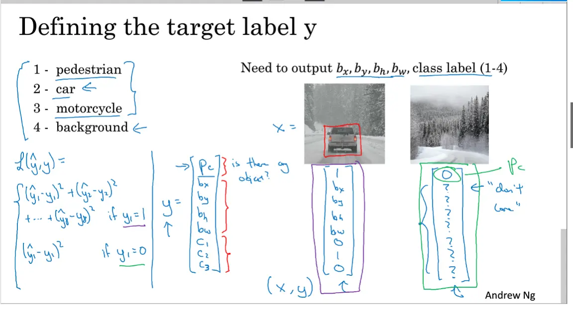 1.目标定位:可输出中心点的坐标及目标的高度和宽度。代价函数也要进行重新定义。