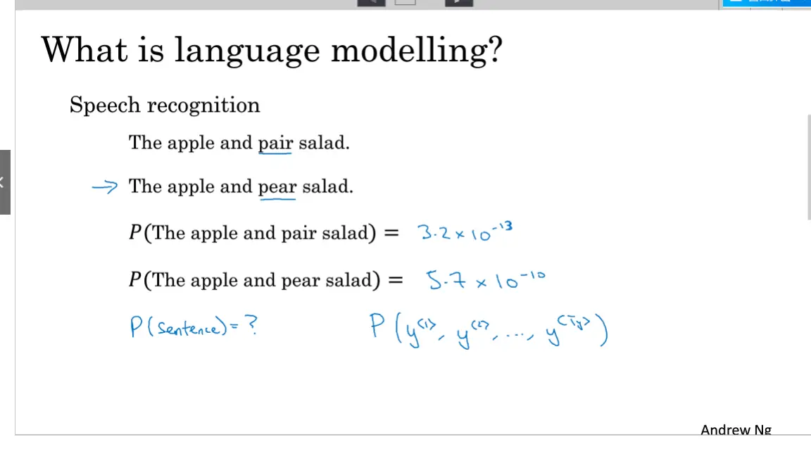 如机器录到一句话并将其转化成文字时,会有不同的版本。如The apple and pair salad. The apple and pear salad. 神经网络会计算出两个句子的概率,然后输出概率在大的句子。