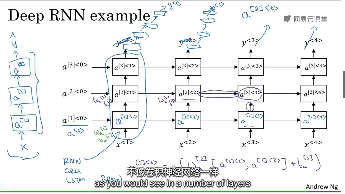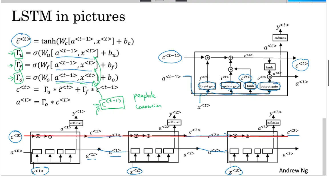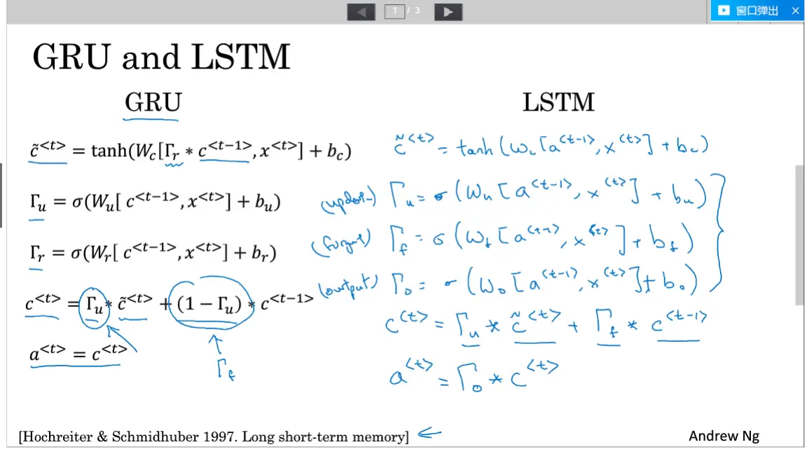 GRU更简易,容易搭建更大的网络(只有两个门),LSTM更灵活更强大(三个门:更新门,遗忘门和输出门)值得一提的是在GRU中a_< t > = c_< t >, 而在LSTM中他们并不相等。