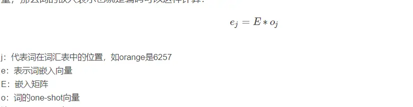 通过该矩阵E能将one-hot编码得到的(1,100000)的向量转化成(300,1)的向量。