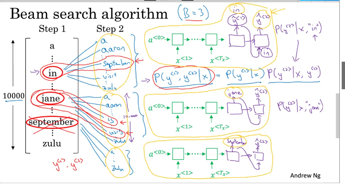 集束搜素可设置集束宽B。 第一次会找出B个最有可能的词汇