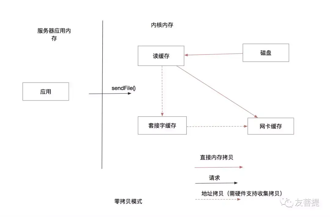 其中套接字缓存 仅仅保存了 读缓存内存地址 网卡缓存通过获取套接字保存的地址 直接从读缓存拷贝文件数据。