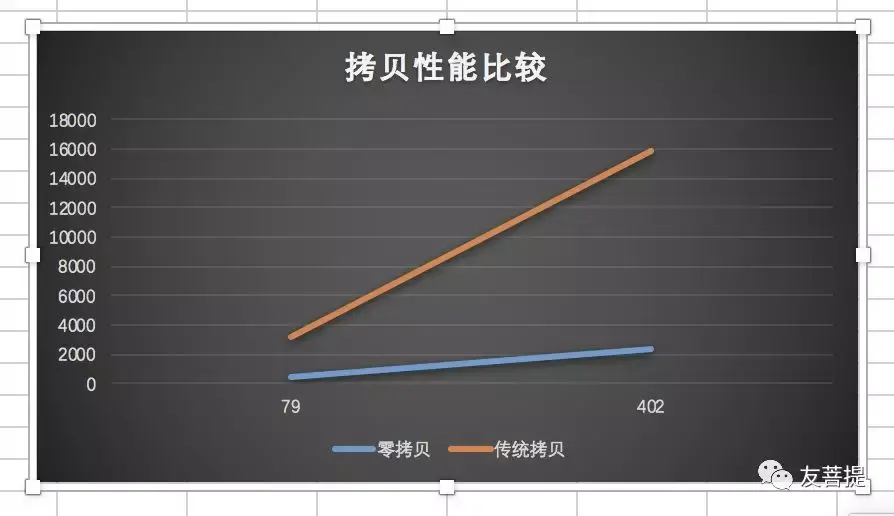 两种拷贝模式 的性能比较 横轴为文件大小 纵轴为拷贝耗时