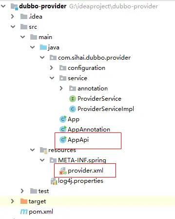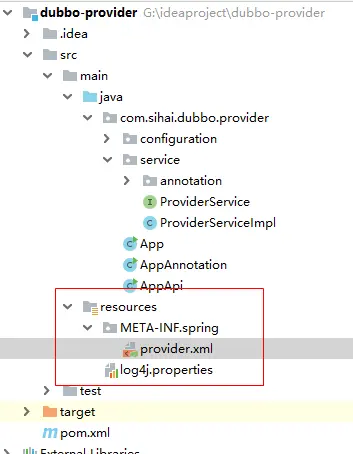 首先,我们在我们项目的 resource 目录下创建 META-INF.spring 包,然后再创建 provider.xml 文件,名字可以任取哦,如下图。