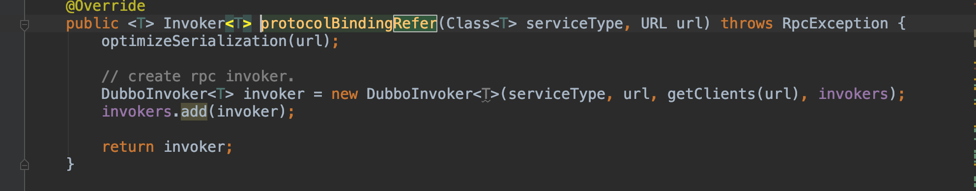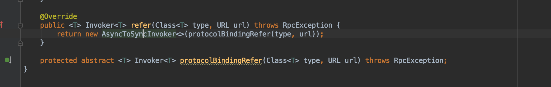 AbstractProtocol中refer方法中protocolBindingRefer方法是抽象方法,是具体协议对象,默认DubboProtocol去实现了protocolBindingRefer方法.如果是是否group,最后调用doRefer方法