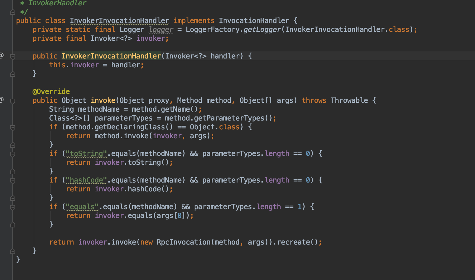 这里就是ProxyFactory调用getProxy方法获取的代理对象,这里ProxyFactory注入是实例对象是ProxyFactroy$Adaptive对象,默认是使用JavassistProxyFactory生成Invoker.