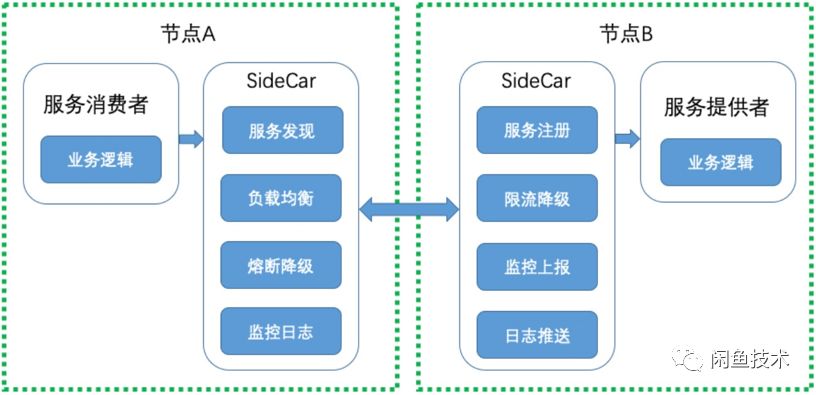 如上图所示:与目前比较常见的微服务框架相比,ServiceMesh把微服务客户端核心功能独立出来,并作为一个独立Proxy进程部署在每一个主机上,业务进程通过Proxy进程与外界通信。这个独立的Proxy进程就是ServiceMesh的核心: SideCar。