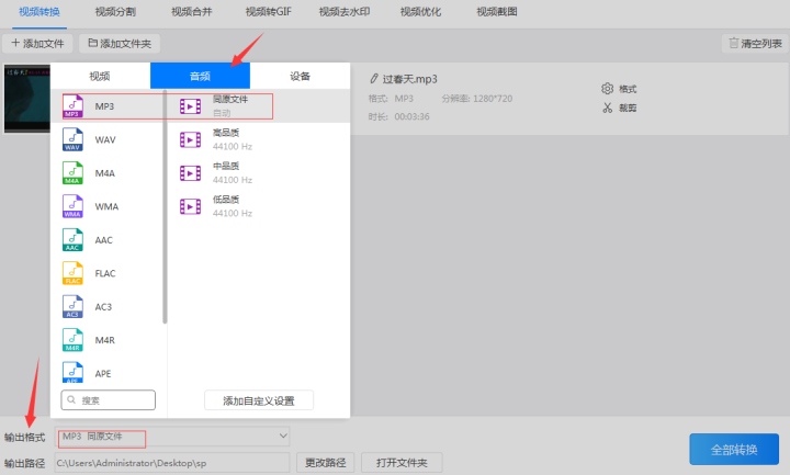 在以前我们有看想看的视频需要买光碟然后放到DVD中进行播放,而在这大数据兴起的时代,我们可以很轻松的在网上找到需要的视频。但是当视频中有喜欢的bgm,想学的英语,又或者想把mv里的音乐导出来。这些都需要把mp4的视频格式转换成mp3音频格式。那怎么用电脑转换呢?