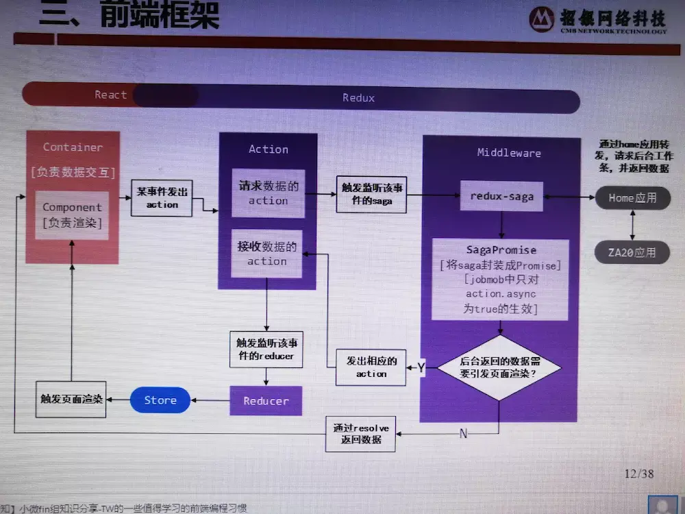- 我们可以在react的component中调用action,来更新或者获取数据。