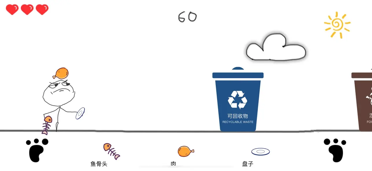 身在杭州,看着上海垃圾分类如火如荼的进行,内心不免有些慌乱,为了更好、更有趣的学习垃圾分类知识,我和小伙伴利用业余时间开发了一款垃圾分类游戏,我们首先确定了基调,游戏要有魔性的画风、粗糙的风格,但粗中有细,简单有趣,又富有挑战性,下面是游戏的预览图和视频。