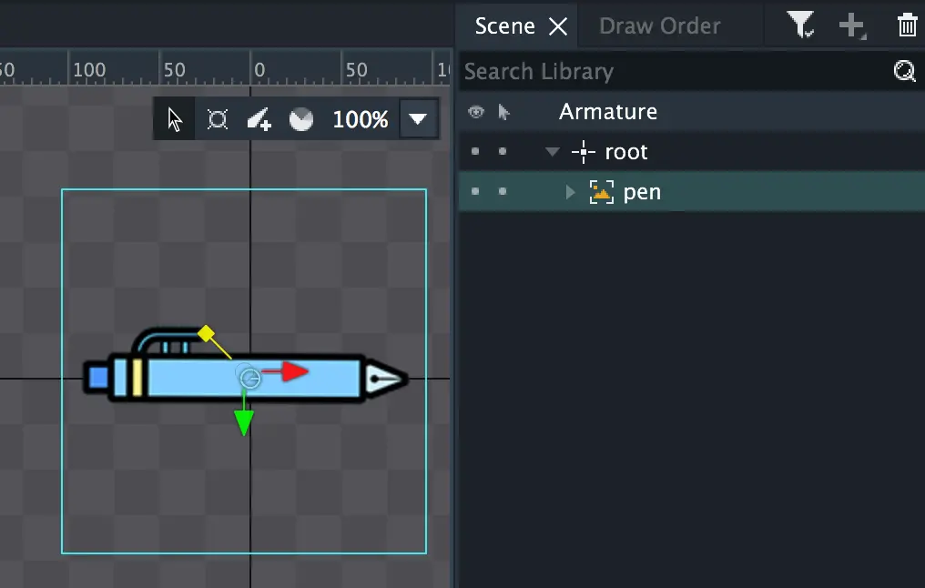 对于 RPG 游戏,最好使用一根有长度的骨骼来绑定图片,以便调整贴图与骨骼的相对方向,来保证装备后的视觉效果正确。